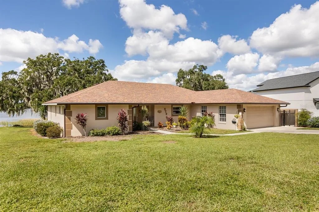 Amazing opportunity to own a beautifully updated lakefront home on Lake Juliana. Experience exquisite lakefront living at its best with this 3 bedroom, 2 bath home plus a bonus room or office situated on a 0.54 acre corner lot with approximately 120 feet of waterfront. Enjoy stunning sunset views, direct boating access, and the freedom of no HOA. This property also qualifies for USDA 100 percent financing, offering an incredible chance for affordable lakefront ownership. Bedrooms 2 and 3 feature separate entrances, ideal for multigenerational living or income producing potential. Inside, you will find an open floor plan with a split bedroom layout for privacy. When you tour this home you'll notice the huge amount of storage! The homeowners have meticulously maintained this property, and nearly every major detail has been updated, including a newer roof (2021) and gutters with gutter guards., 4 ton 14.3 SEER air conditioning system (2023), 50 gallon water tank (2021), and Ultraviolet in duct air purification system (2025). The kitchen and both bathrooms feature luxury vinyl flooring, LED recessed lighting, and updated vanity, showers, and fixtures. Additional upgrades include a Jacuzzi walk-in shower (2020), newer appliances including washer and dryer (2020), dishwasher (2023), stove (2024), plus a new combination water softener and whole house filter system (2025). The home also features new pavers in the screened lanai, a 20x10 storage shed, newer windows, new carpet in the office (2024), updated lighting and hardware. Enjoy mornings on your screened lanai overlooking the lake or afternoons fishing and boating from your private dock. Surrounded by mature oak trees and nicely manicured landscaping, this home offers an exceptional combination of comfort, flexibility, and waterfront living.